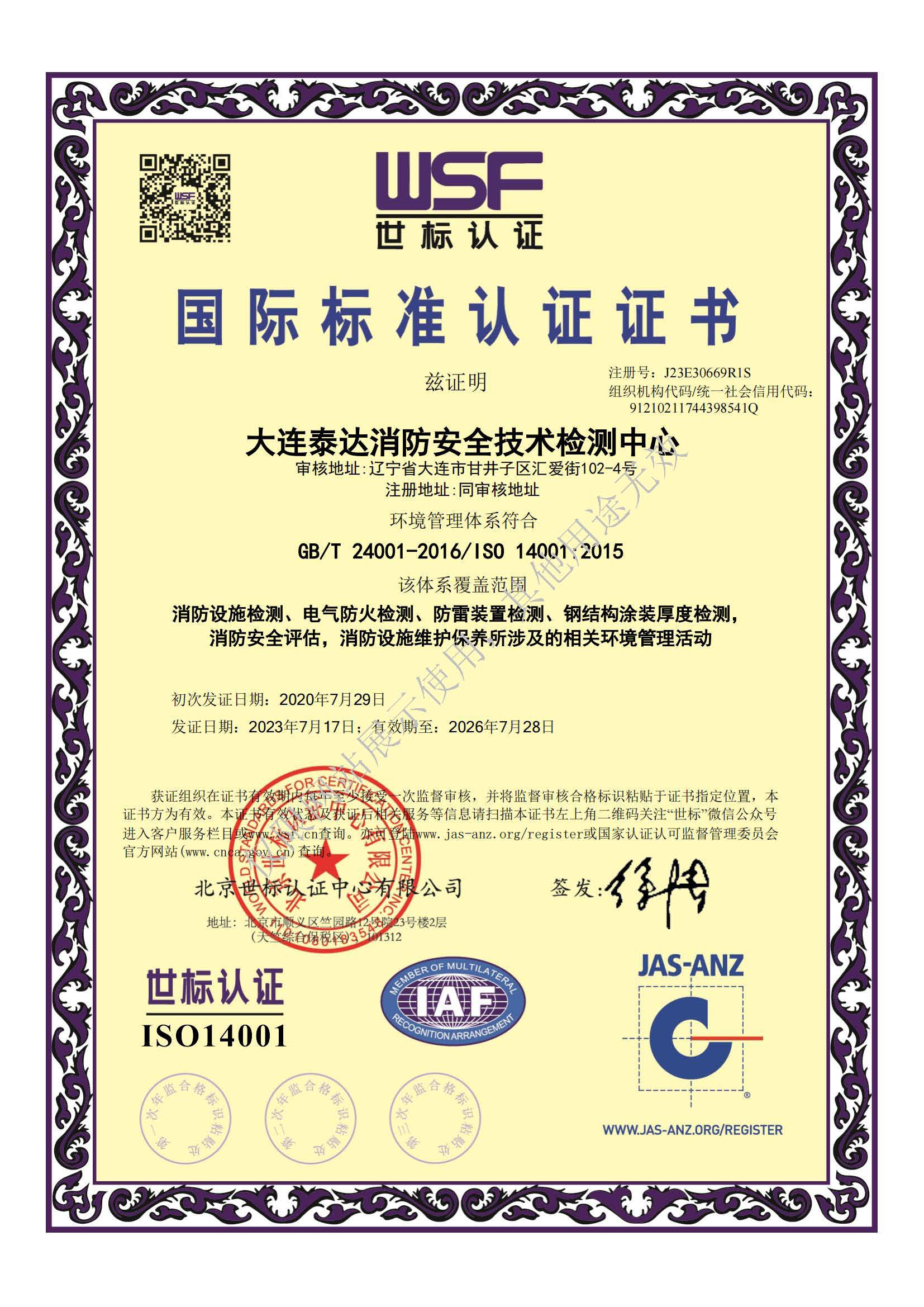 · 是經“社會消防技術服務信息系統(tǒng)”備案并公示的消防技術服務機構,已取得中國氣象局頒發(fā)的雷電防護裝置檢測資質證書、遼寧省質量技術監(jiān)督局審核批準的檢驗檢測機構資質認定證書(CMA)及包括消防檢測、電氣檢測、雷電防護裝置檢測、防火涂層厚度檢測等在內的200余項檢驗檢測能力,取得大連市應急管理局頒發(fā)的安全生產標準化證書,獲得質量管理體系、環(huán)境管理體系、職業(yè)健康安全管理體系認證證書,是經備案的高新技術企業(yè),可獨立出具具有證明作用的檢測報告。